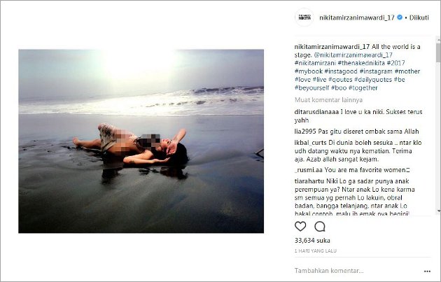 Foto yang telah disukai hingga 33 ribu netter ini tentu saja menuai berbagai komentar. Banyak netter yang menyayangkan foto sensasional Nikita tersebut.